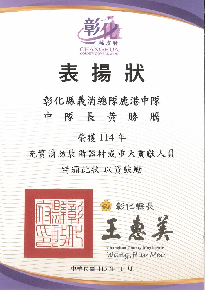> 社會公益與關懷 > 社會公益-表揚狀-彰化縣政府